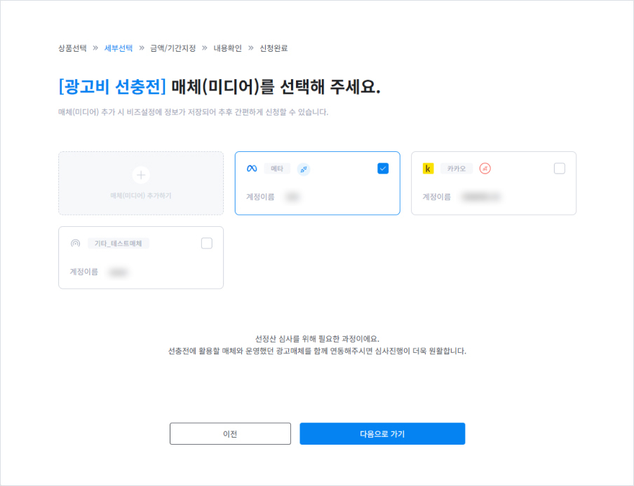 구글, 네이버 등에 광고비를 충전해 주는 선충전 방식을 선택해주세요.